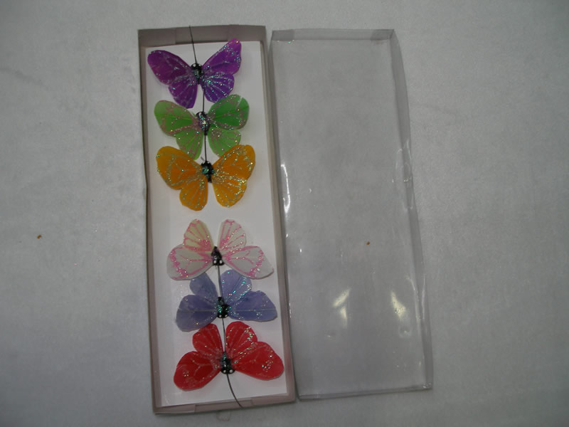 butterfly material:feather and iron slik long:6cm mix color paper box package |